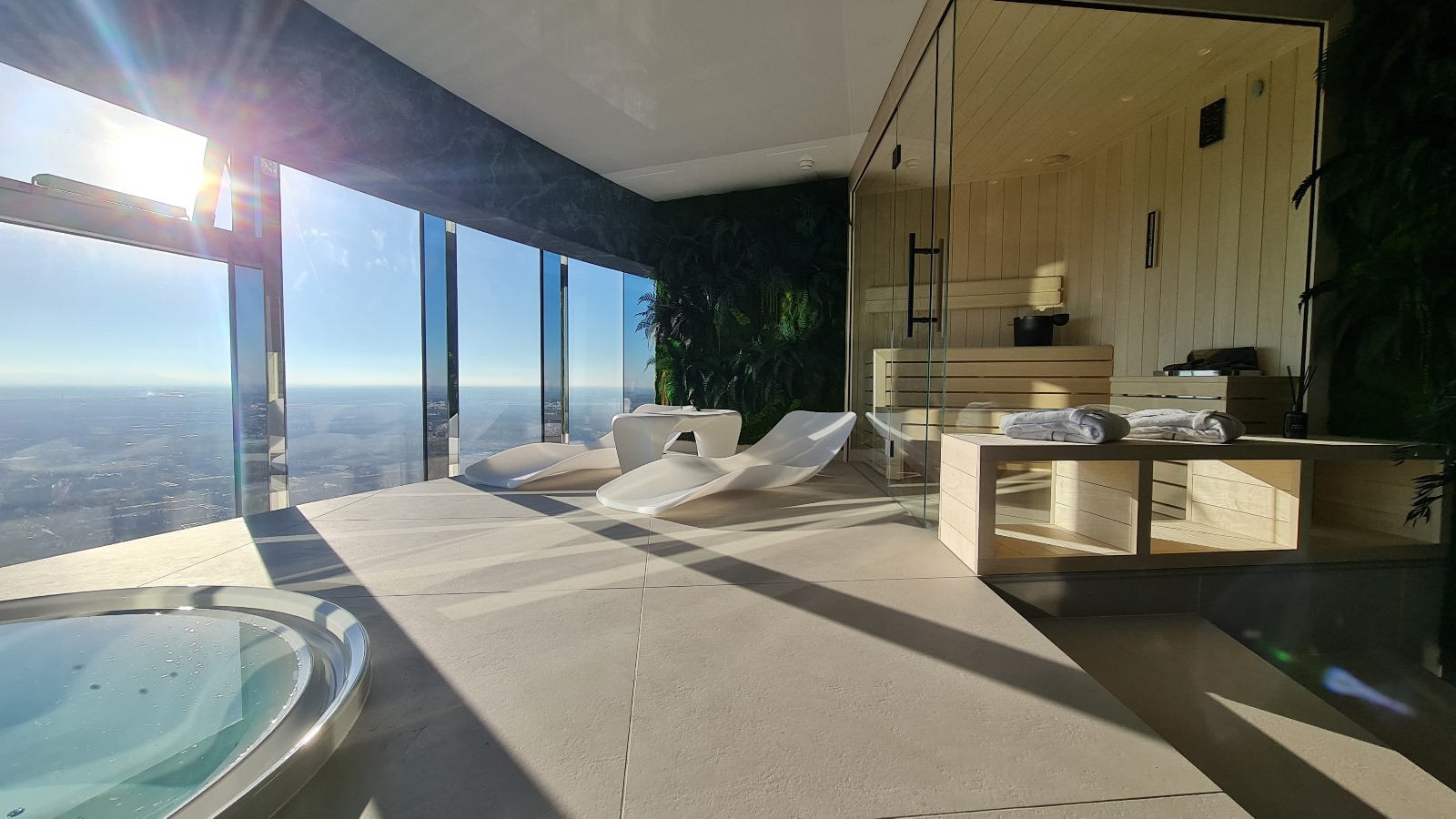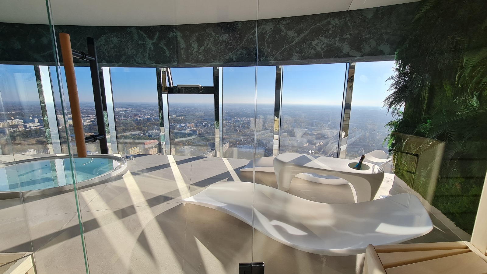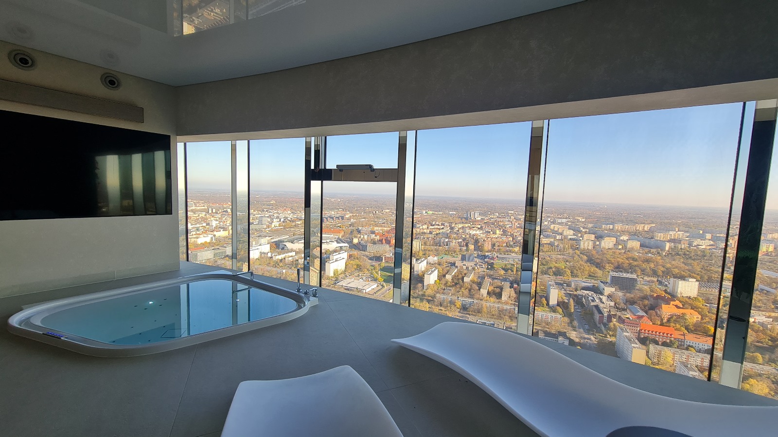 Sauna w apartamencie OASIS na 48 piętrze w Sky Tower we Wrocławiu