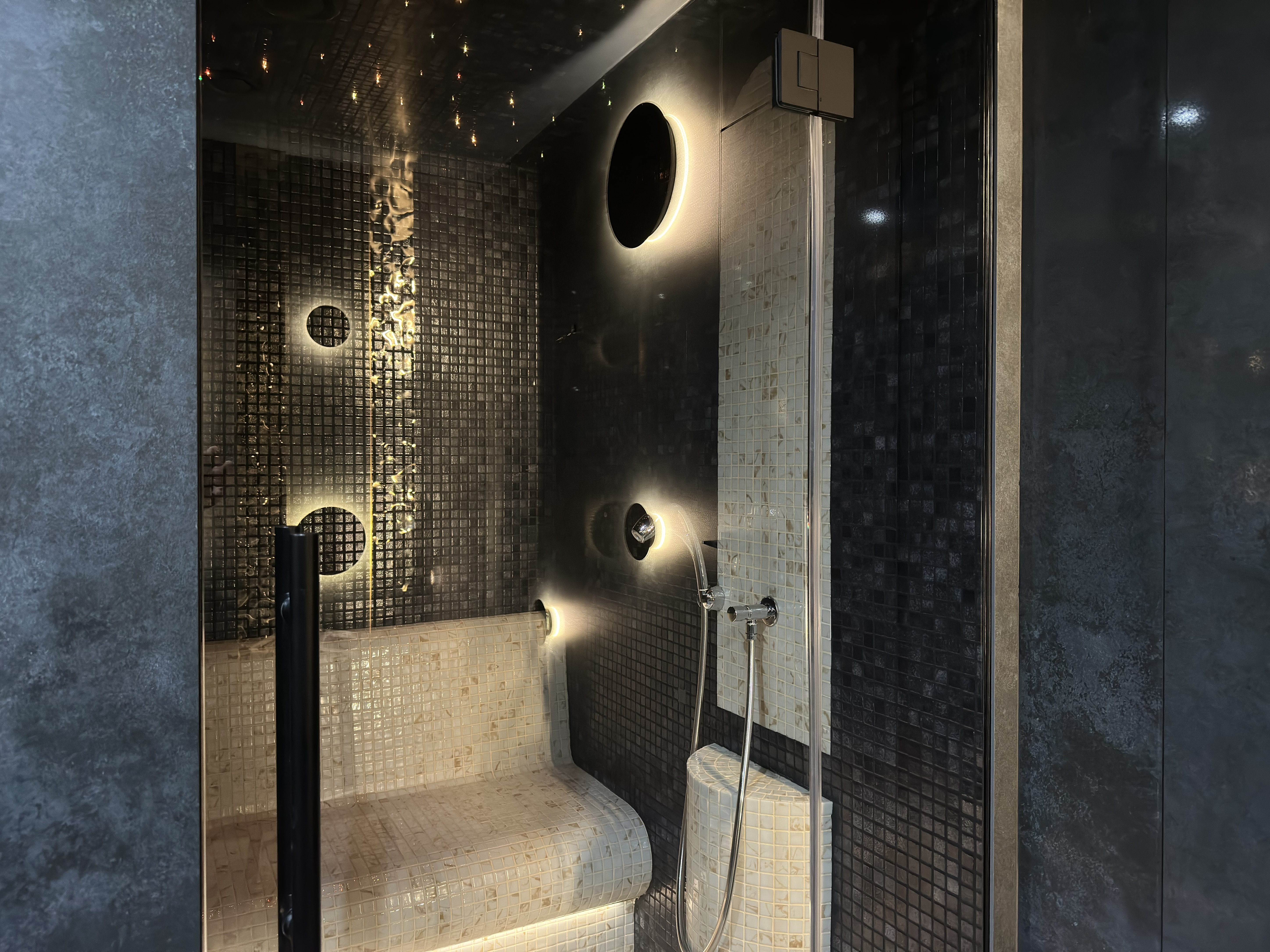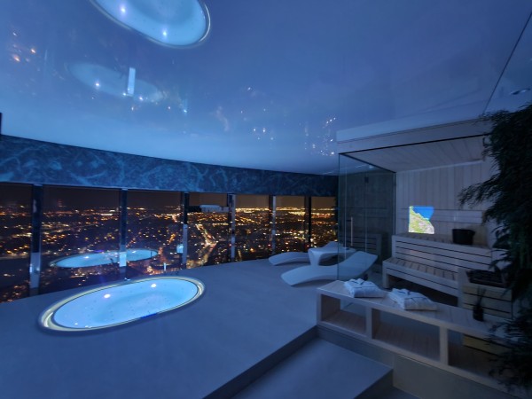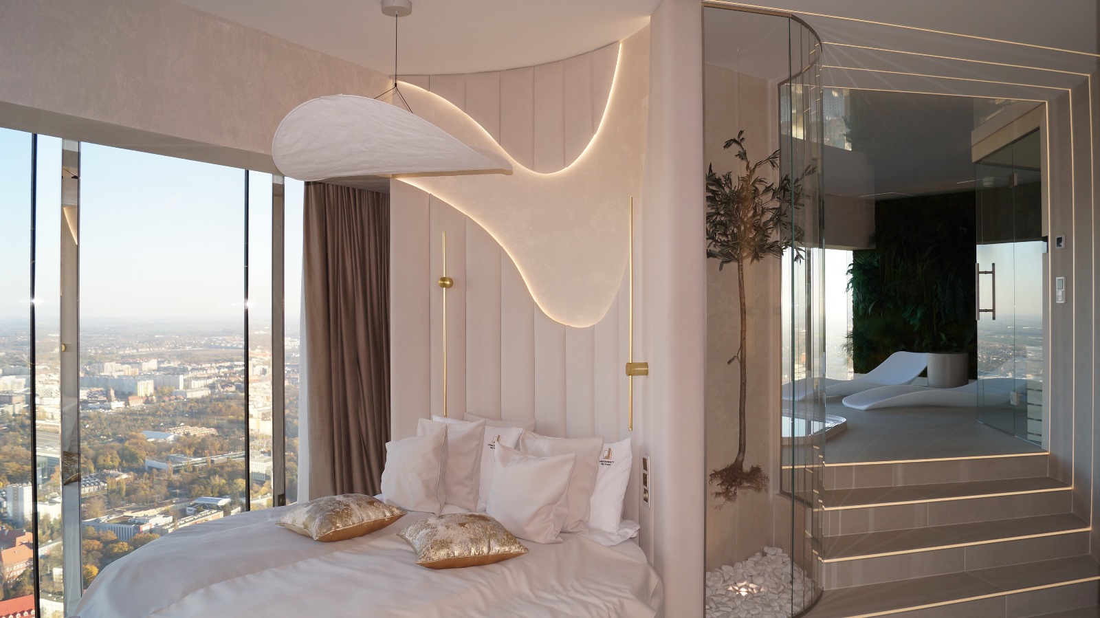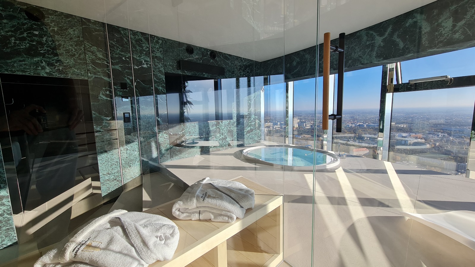 Sauna w apartamencie OASIS na 48 piętrze w Sky Tower we Wrocławiu