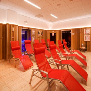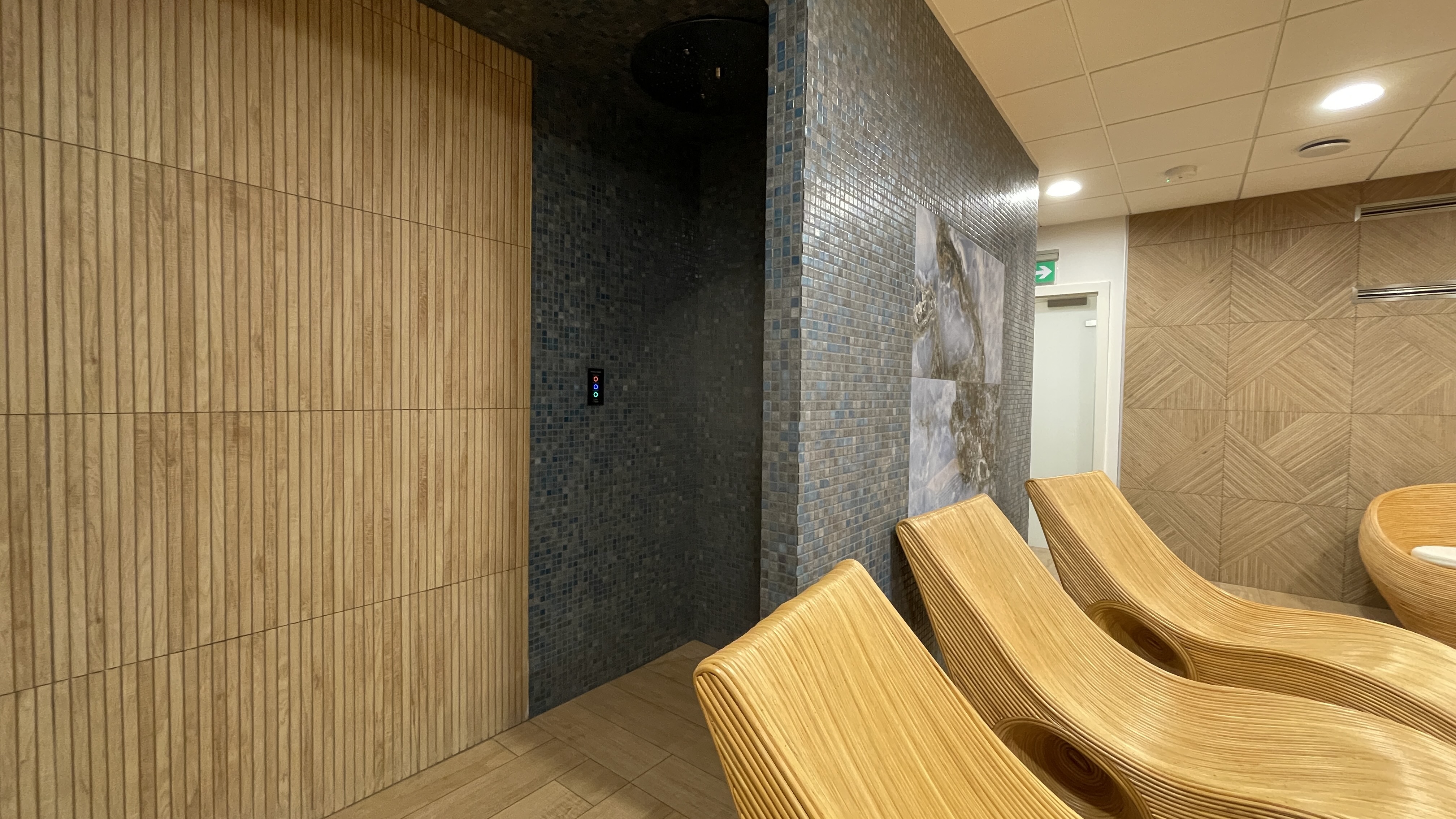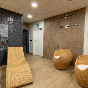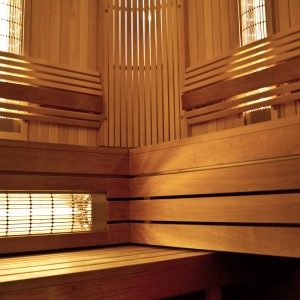 Wnętrze Strefy Relaksu w Gravitan Targówek, a także saun, wyłożone są panelami z drewna cedrowego o charakterystycznym zapachu południa.