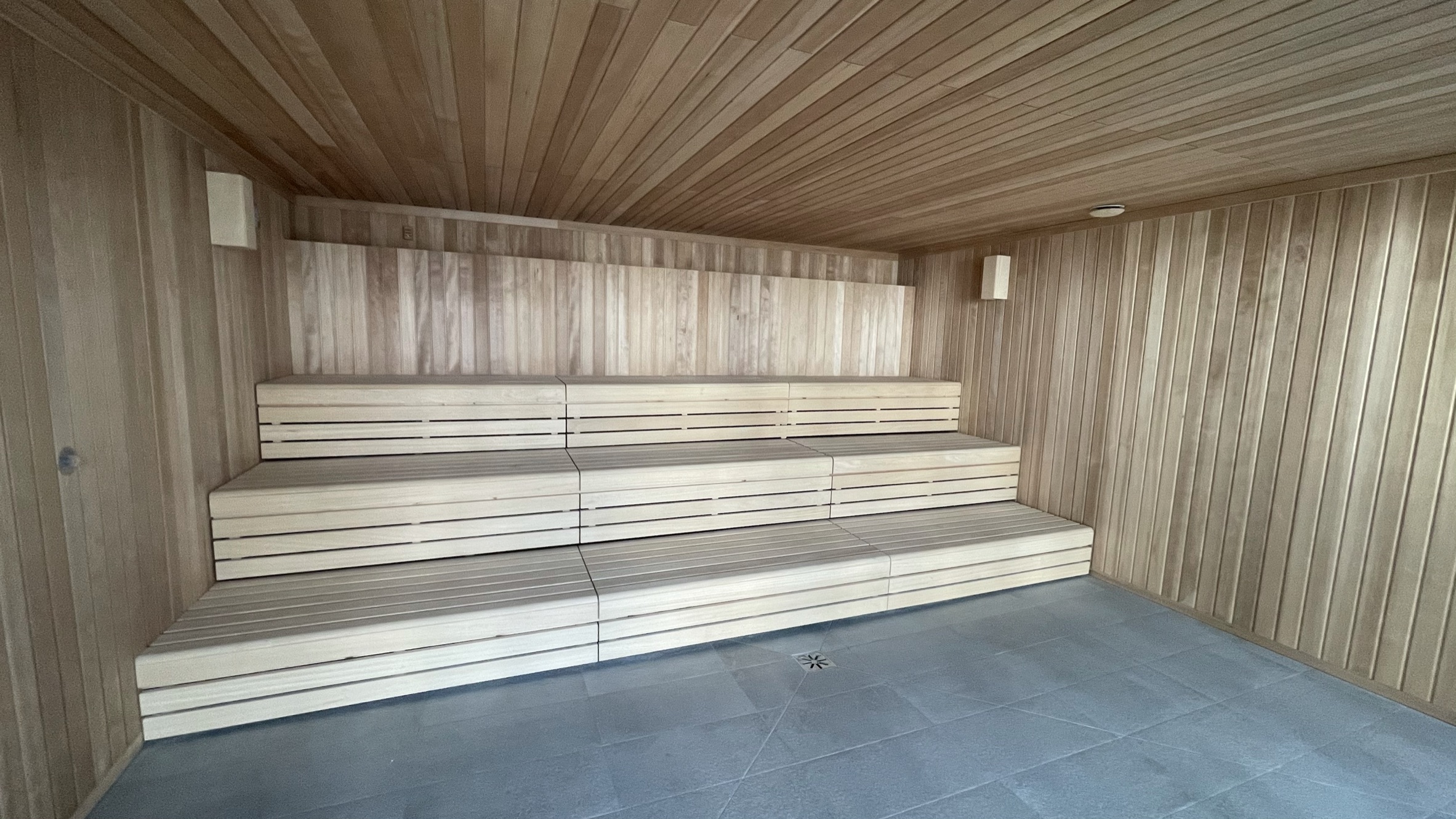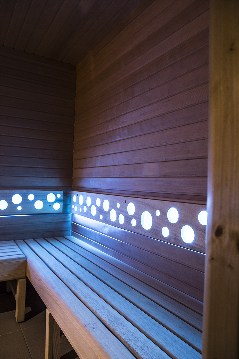 W zakresie prac znalazło się wyposażenie całego saunarium.
